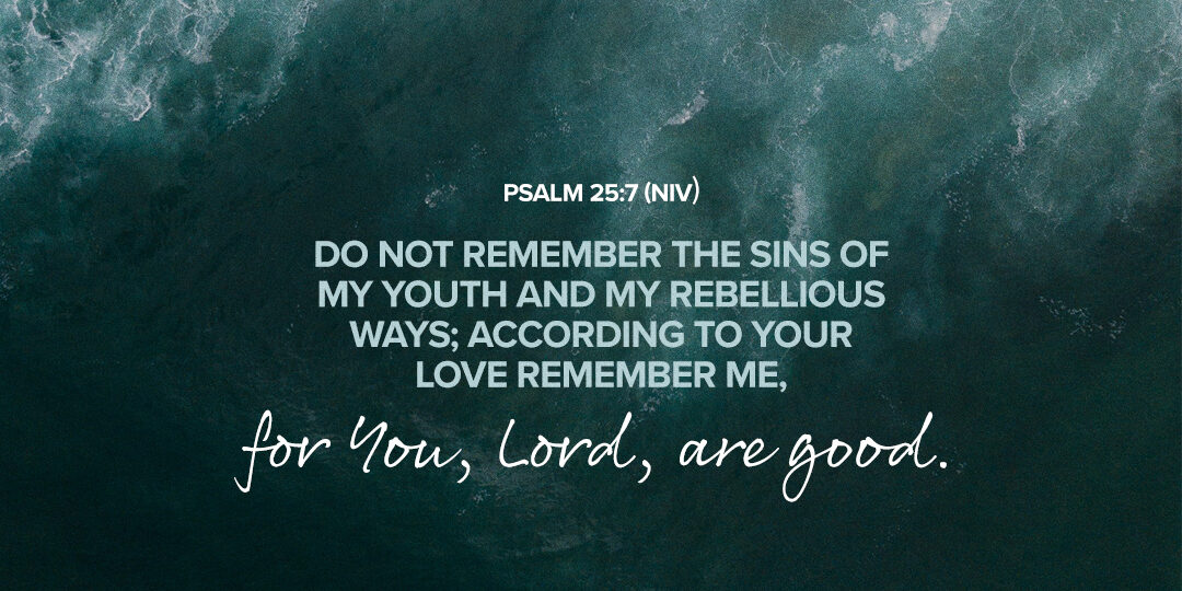 Psalm 25:7 Do not remember the sins of my youth and my rebellious ways; according to Your love remember me, for You, Lord, are good. (NIV)