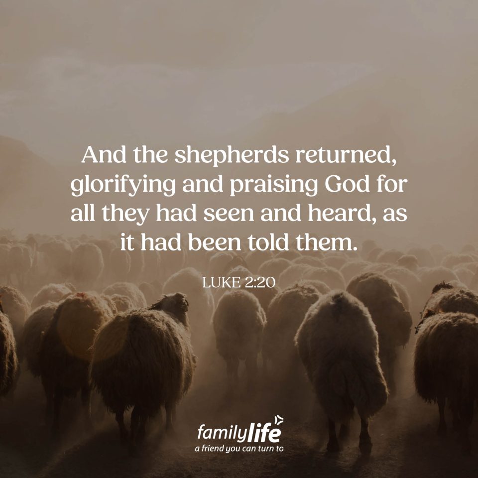 Joy for you! When you make a joyful noise to God, it doesn’t have to be sung—you can shout, or bang a drum, or cackle with laughter, or stomp your feet, or clap your hands. On the night Jesus was born, the shepherds made a joyful noise all throughout Bethlehem. And that same joy can rise up in you today as you celebrate the Savior’s birth.