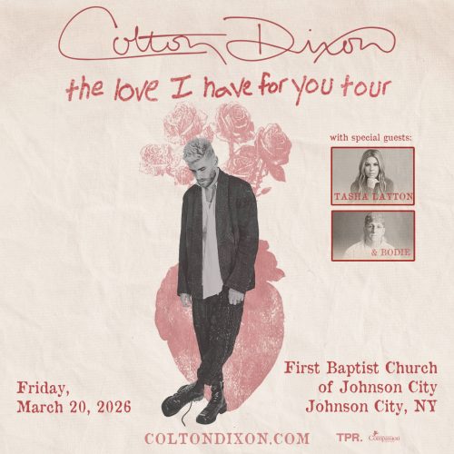 Get ready for an unforgettable night of music and inspiration as Colton Dixon’s The Love I Have For You Tour hits Johnson City this spring! Colton brings his signature energy and powerful vocals to the stage, sharing new music along with fan favorites. He’s joined by special guests Tasha Layton and bodie, making this a stacked lineup of worship and moments you’ll remember long after the night is over. Don’t miss it!